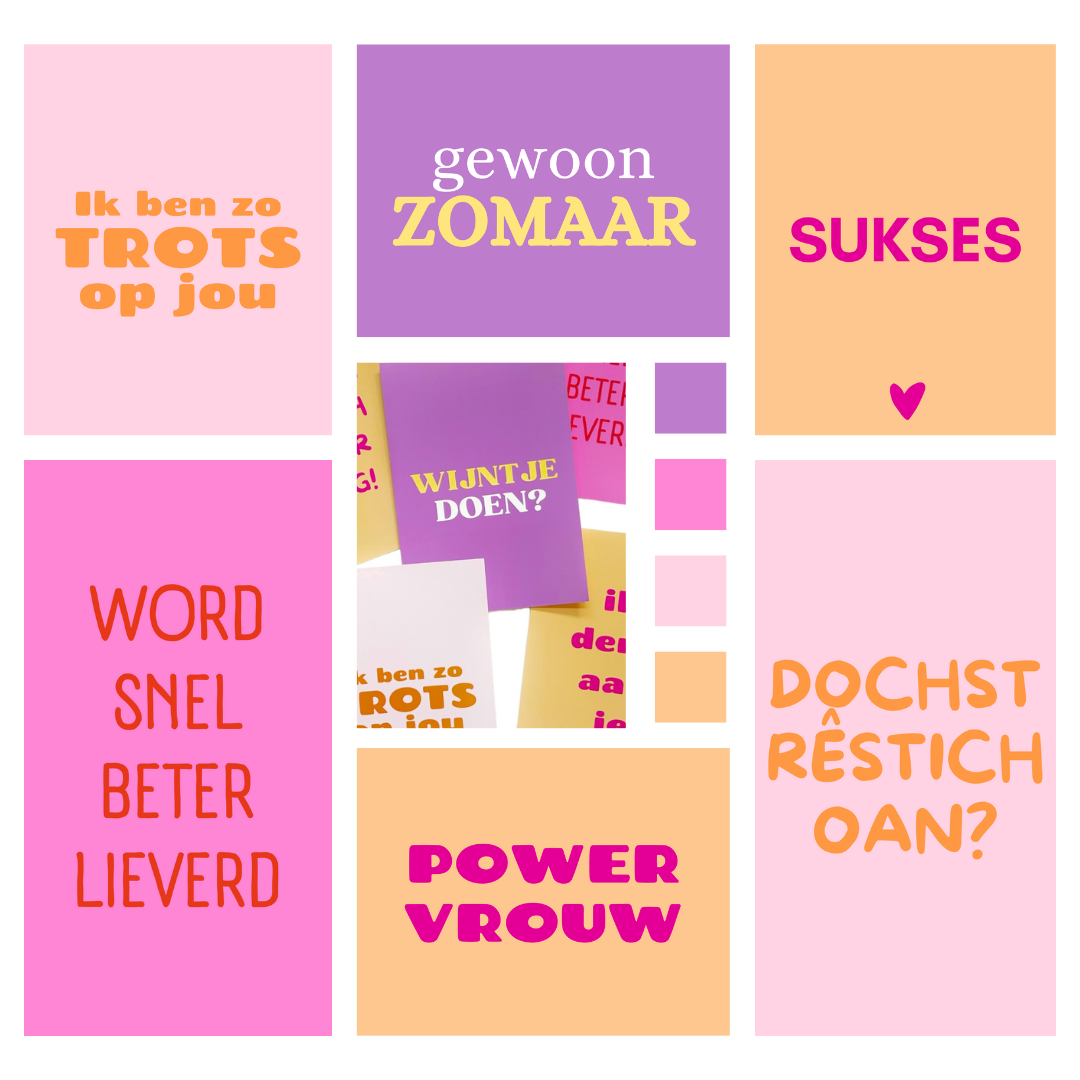 Bij Gewoon Bien vindt je kaarten voor allerlei gelegenheden en in heel veel kleurtjes! Zoek jij op kleur? Kies dan hieronder de kleur die jij leuk vindt! Ook de Fryske kaartjes vindt je hieronder. Zoek jij liever op categorie? Klik dan op het pijltje naast 'wenskaarten' bovenaan de pagina.